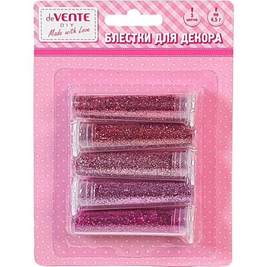 Блестки (глиттер) для декорирования "deVENTE. Оттенки красного" 5 цветов по 4,5 г, в картонном блистере