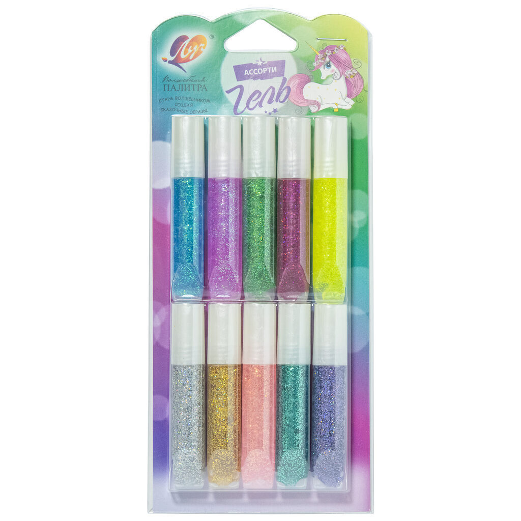 Гель цветной с блестками 10цв*5мл., Блеск + Неон