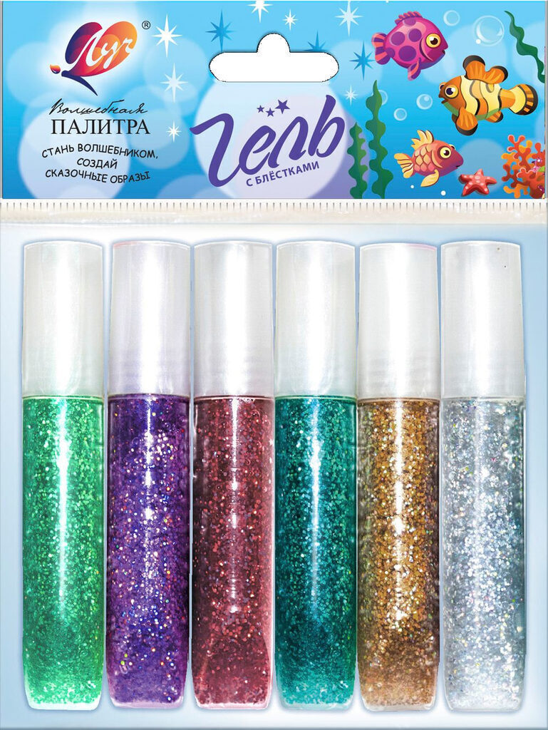 Гель цветной с блестками 6цв*5мл., Блеск . ассорти