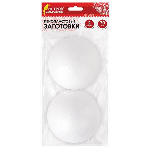 Пенопластовые заготовки для творчества "Шарики", 2 шт., 70 мм, ОСТРОВ СОКРОВИЩ, 661345