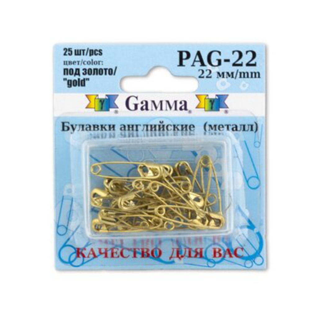 Булавки английские, метал. размер 22мм, 25шт, золото