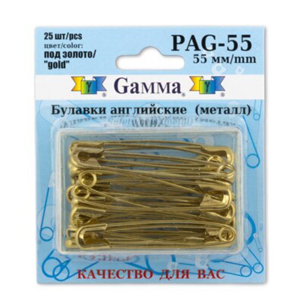 Булавки английские, метал. размер 55мм, 25шт, золото