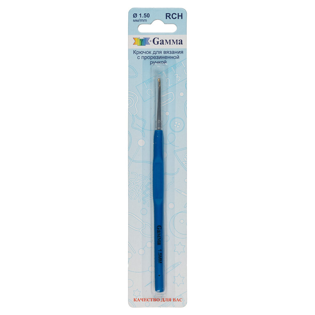 Крючок с прорезиненной ручкой "Gamma" RCH сталь d 1.5 мм 13 см в блистере. Предназначенные для филигранного вязания кружева тонкой нитью. Позолоченная головка обеспечивает хорошее скольжение нити, а также позволяет отчетливо видеть петлю на крючке, что облегчает вязание тонкого полотна. Удобная форма ручки делает вязание комфортным Ручка сделана из эластичного прорезиненного материала, не выскальзывает из рук и не образует мозолей на пальцах. Съемный пластиковый колпачок защищает головку крючка от повреждений и царапин.