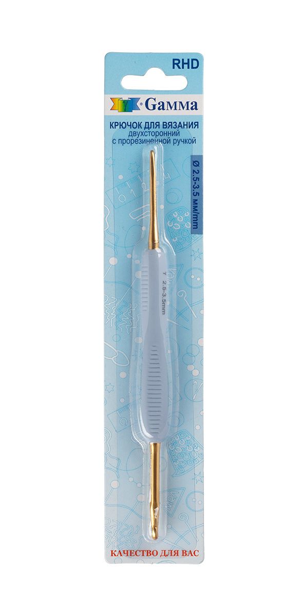 Крючок для вязания двусторонний D=2,5-3,5мм, 13см с прорезиненной ручкой