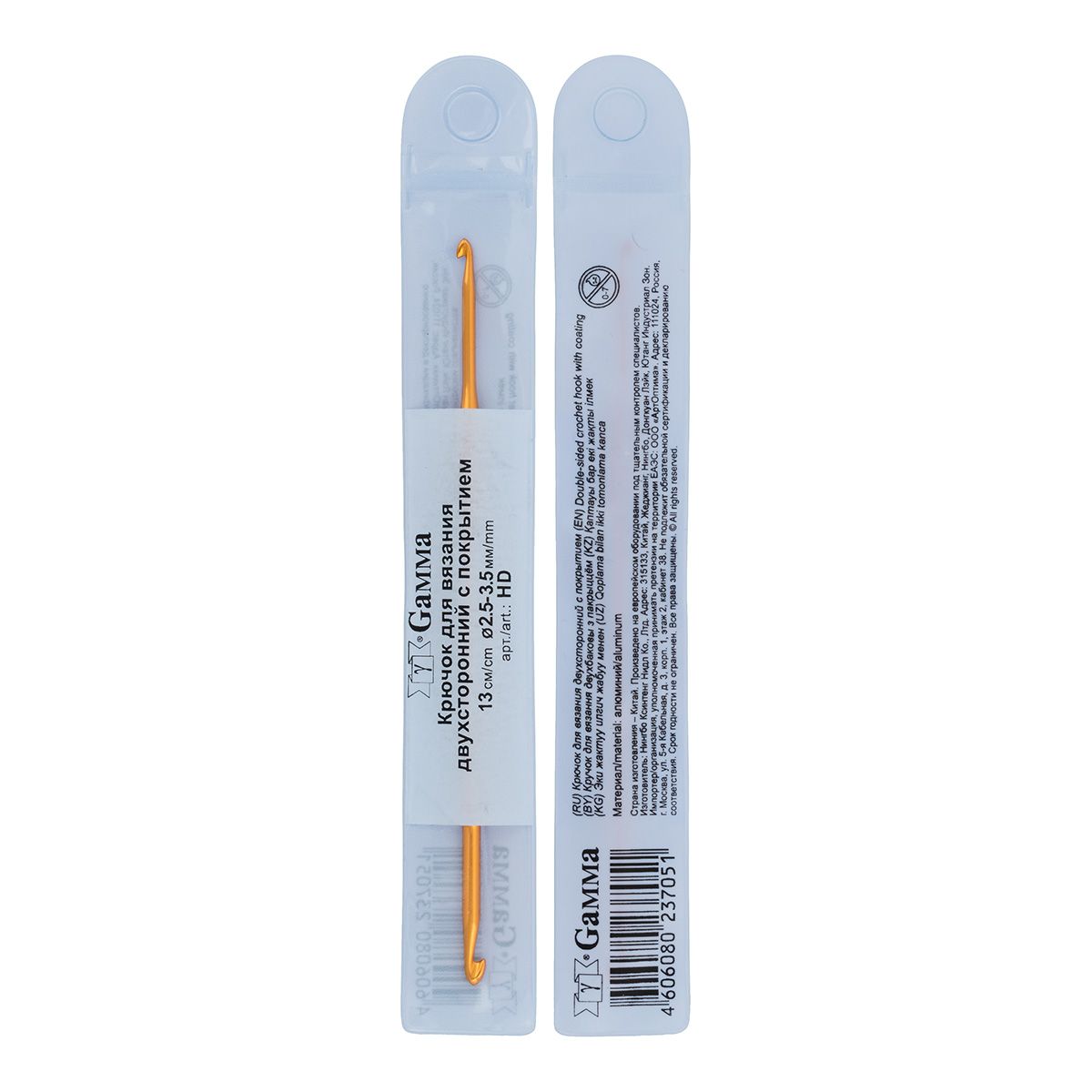 Крючок для вязания двусторонний D=2,5-3,5мм, 13см в чехле, цветной