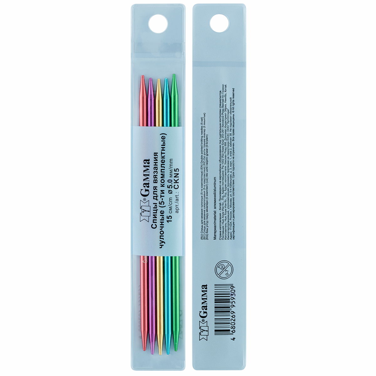 Спицы GAMMA d=5 мм 15 см 5шт чулочные, цветные