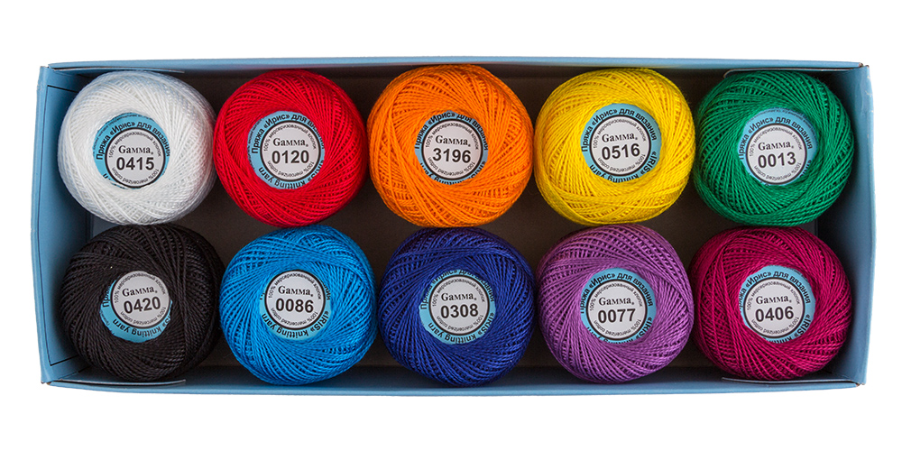 Ассорти Ирис "Gamma" - это 10 гармоничных цветовых сочетаний - от нежных пастельных до ярких радужных. Такой набор - отличный выбор для реализации разнообразных творческих идей и может стать прекрасным подарком для любителя рукоделия. Ирис "Gamma" - мерсеризованные нитки для машинного и ручного вязания ажурного трикотажа, салфеток, воротничков. Они изготавливаются из египетского хлопка на европейском оборудовании, с использованием качественных европейских красителей. Нитки гладкие, равномерной толщины, имеют стойкую окраску. Каждый моточек намотан на картонную бобинку, что не дает нити путаться и облегчает процесс вязания. Каждый набор упакован в удобную и практичную картонную коробку со сдвигающейся прозрачной пластиковой крышкой. Упаковка дополнительно обернута в полиэтиленовую пленку.