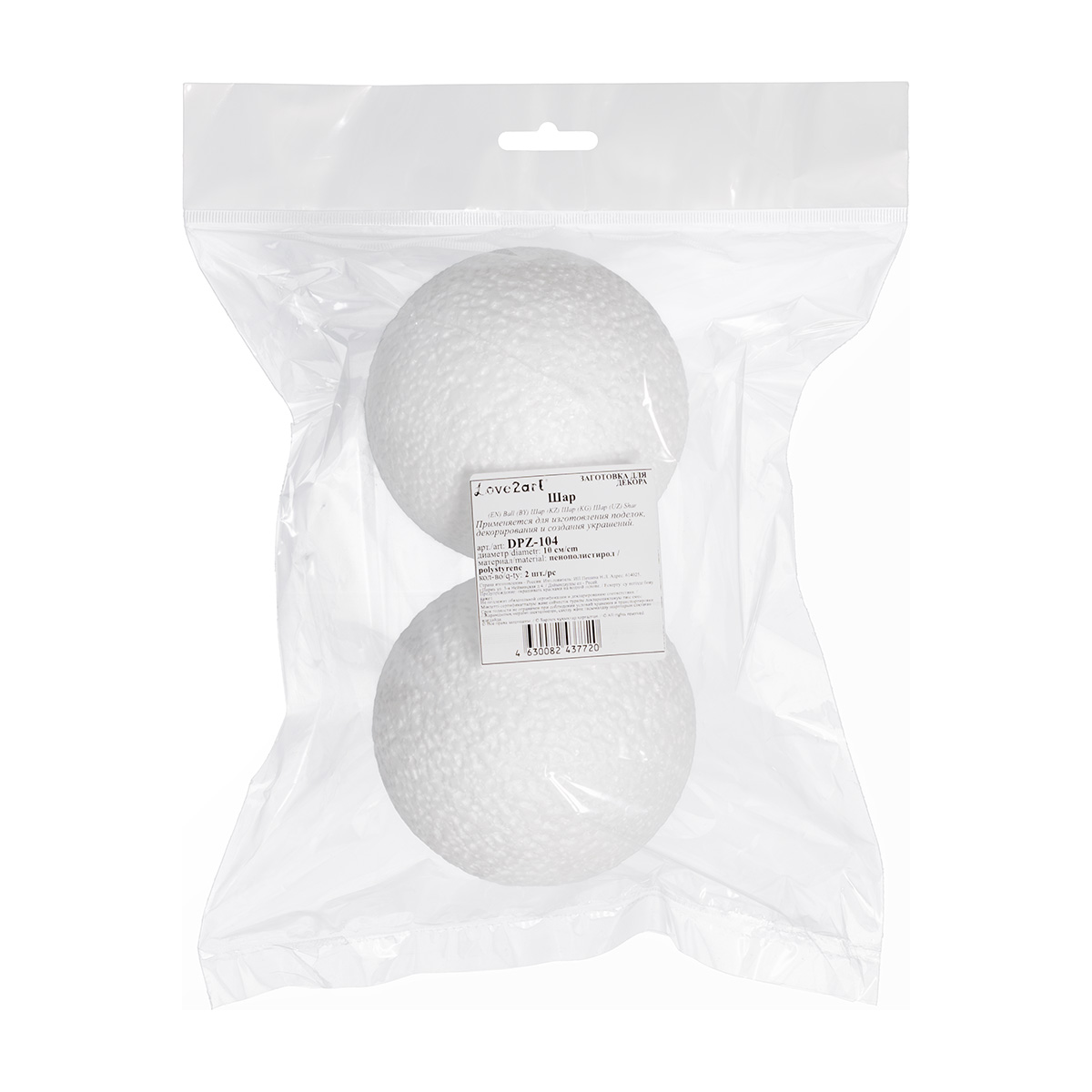Пенопластовая заготовка Шар D=10см, 2 шт