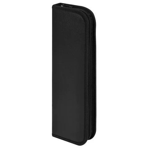 Стильный пенал, выполненный из искусственной кожи, предназначен для хранения и транспортировки кистей. Кисти фиксируются резинкой на местах крепления.