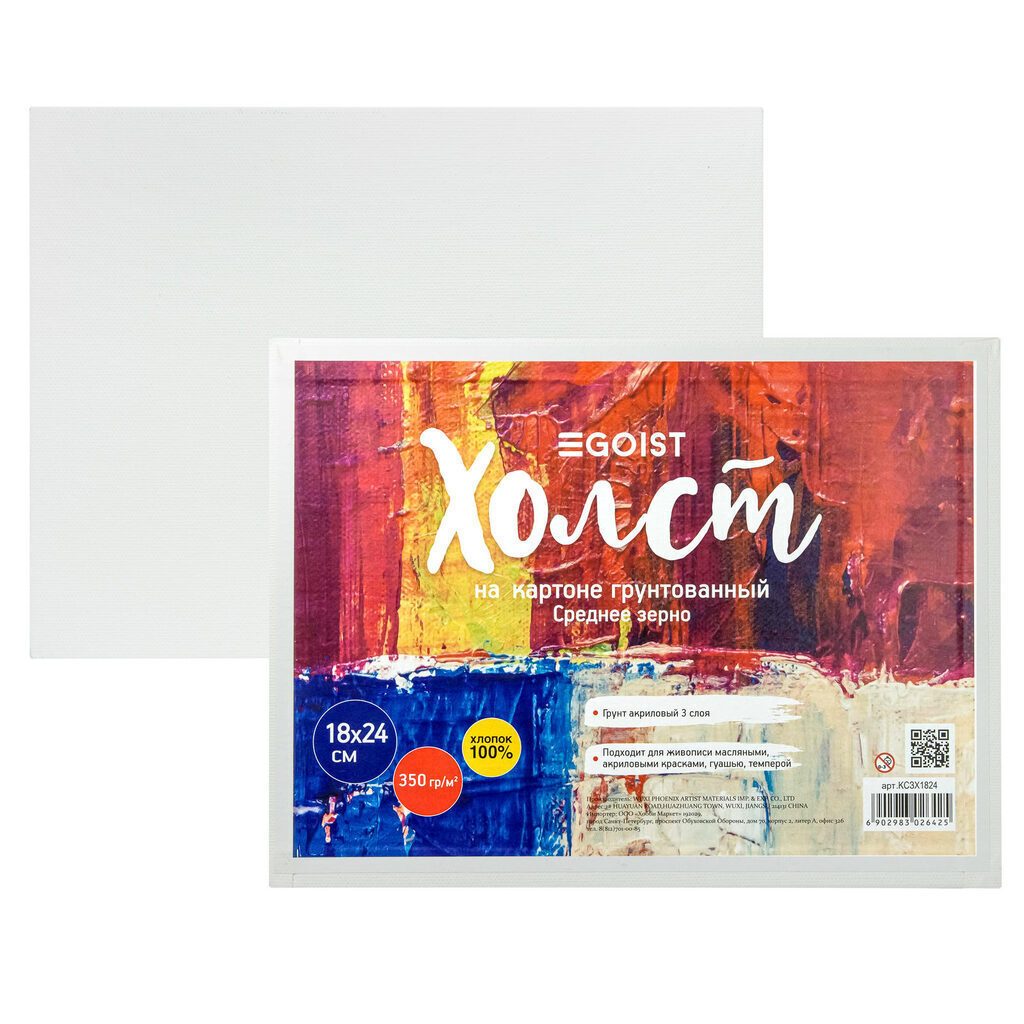 Холст на картоне 18*24 см "Egoist" 100% хлопок, 350 г/м2, среднее зерно