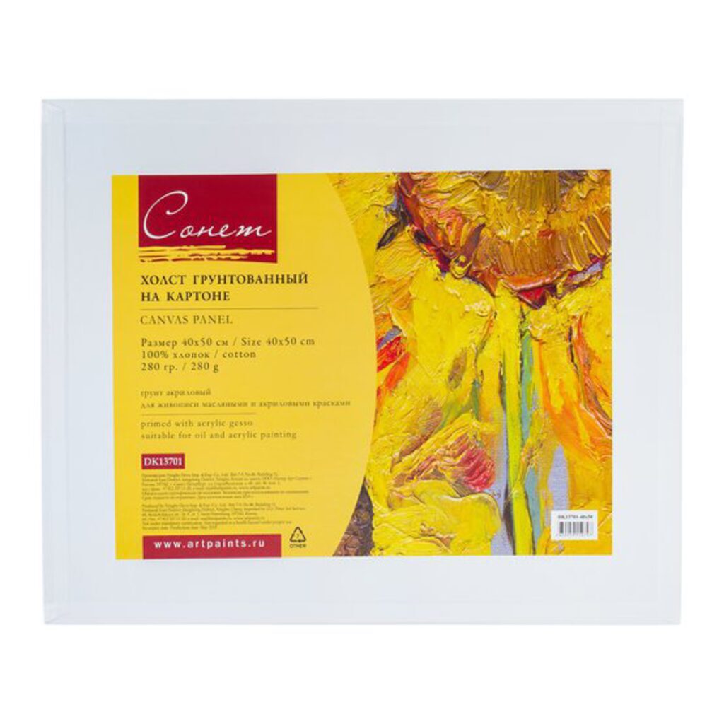Сонет Холст на картоне, 40 х 50 см, 280 г/м2,100% хлопок, мелкое зерно