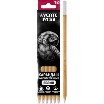Карандаш художественный "deVENTE. Art" белый, для рисования на черной бумаге, трехгранный, в корпусе из натурального дерева, в картонной коробке