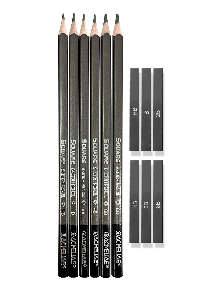 Набор карандашей ч/гр 6шт и графитовых палочек 6шт ACMELIAE, метал.футляр