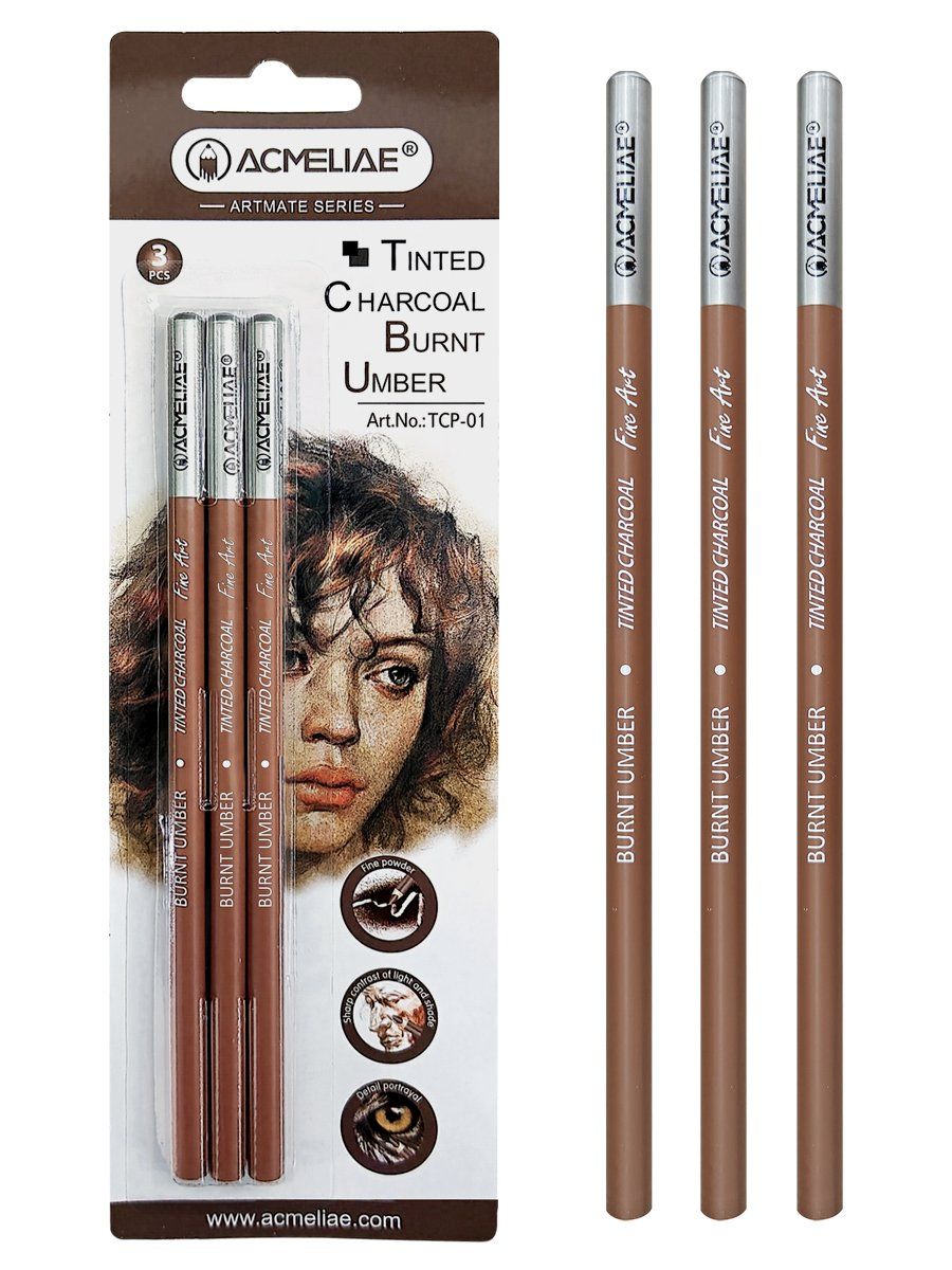 Набор карандашей угольных 3шт ACMELIAE, жженая умбра