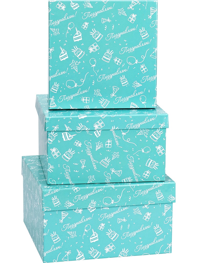 Набор подарочных коробок 3в1 "Поздравляю. Тортики" 19,5*19,5*11см-15,5*15,5*9см