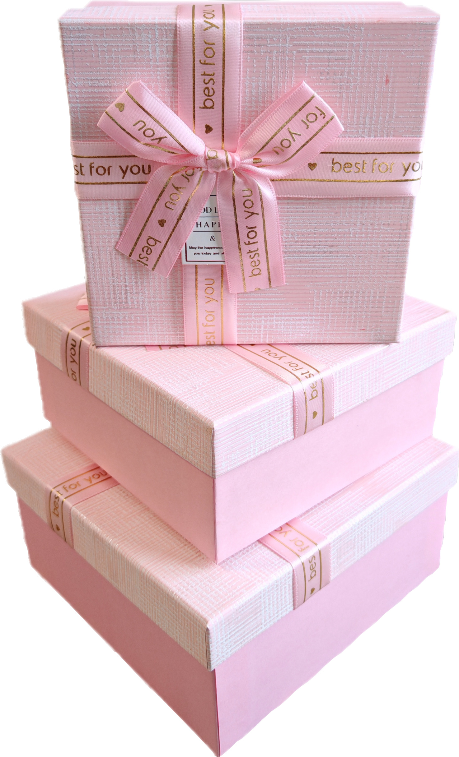 Набор подарочных коробок 3в1 с бантом, розовый/золото 15*15*6.5, 17*17*8, 19*19*9.5см