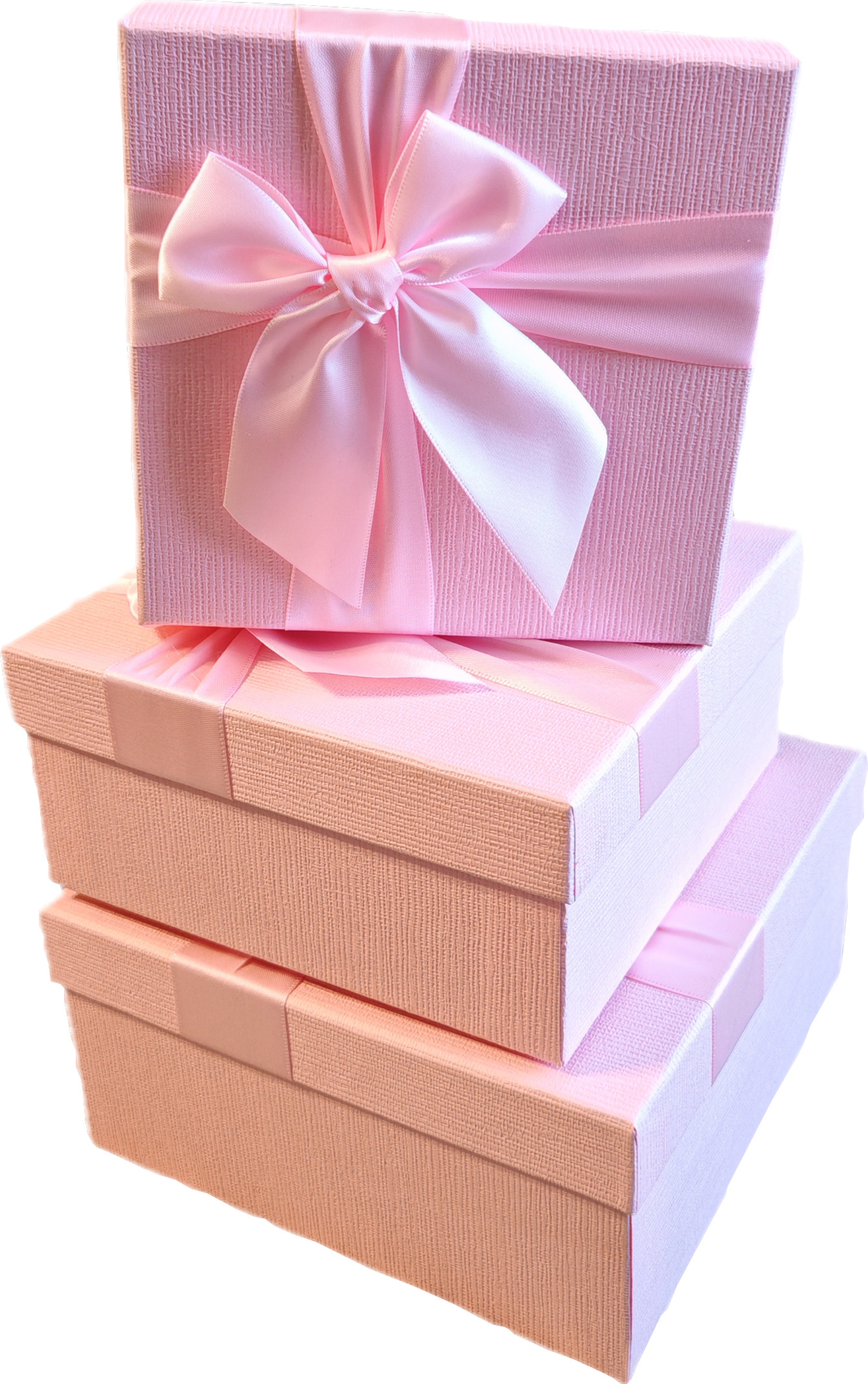 Набор подарочных коробок 3в1 с бантом, розовый 15*15*6.5, 17*17*8, 19*19*9.5см