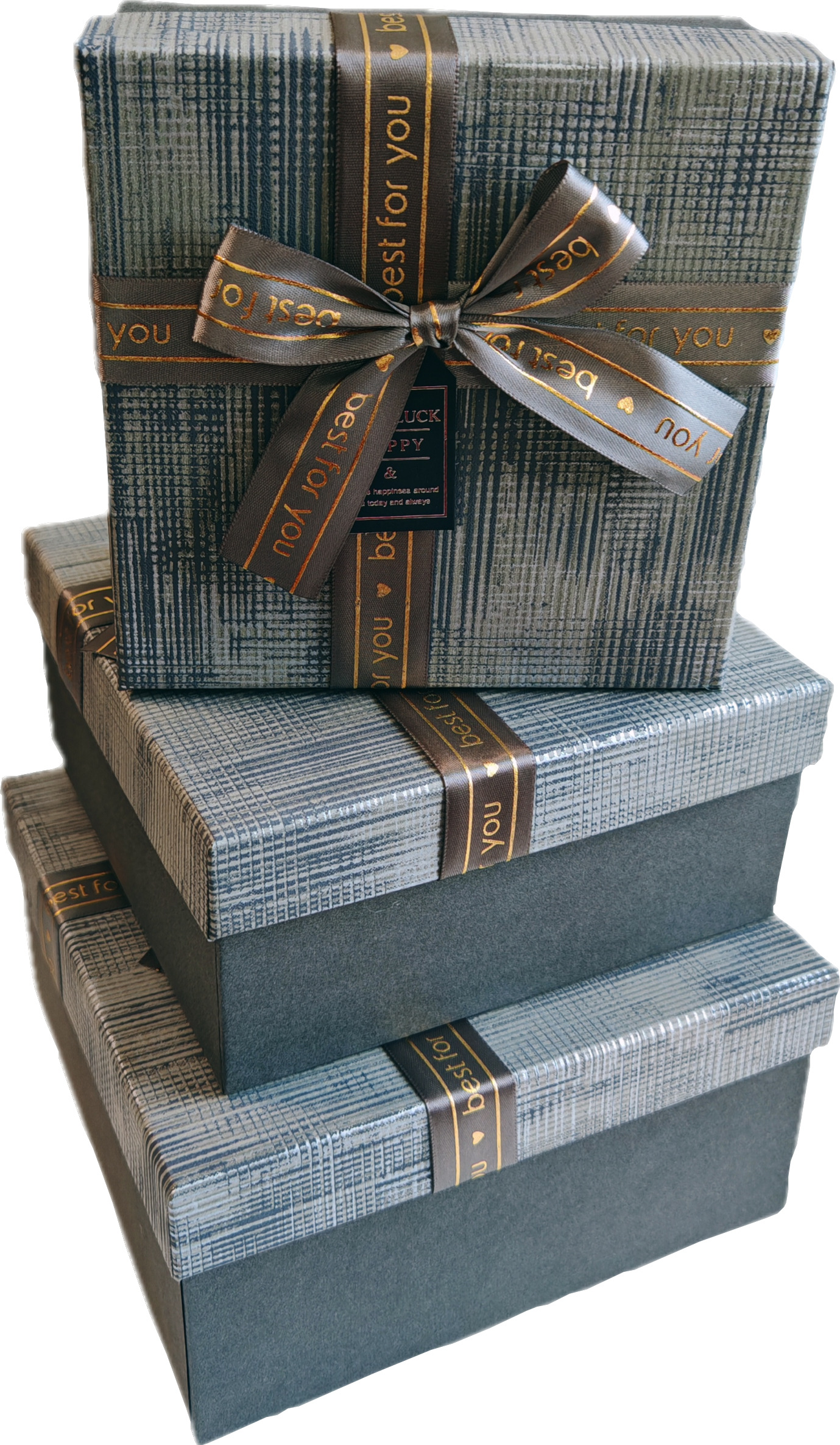 Набор подарочных коробок 3в1 с бантом, серый/золото 15*15*6.5, 17*17*8, 19*19*9.5см