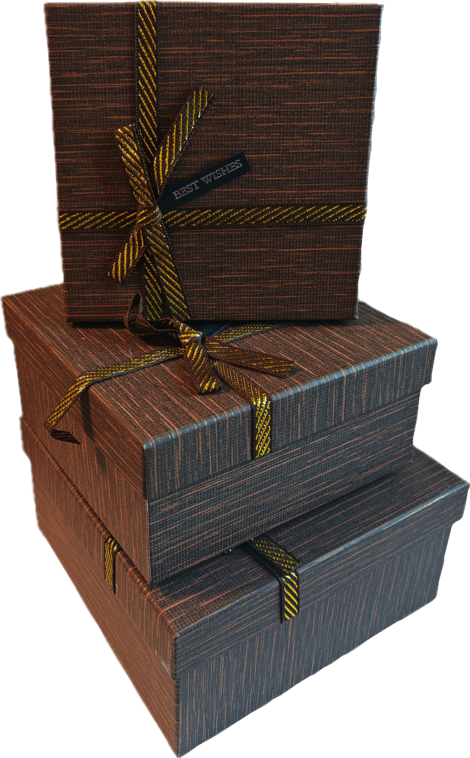 Набор подарочных коробок 3в1 с бантом, шоколад 15*15*6.5, 17*17*8, 19*19*9.5см