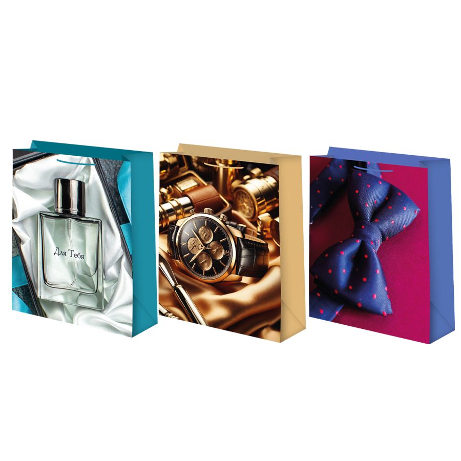 Пакет подар. бумажн. 12*15*6 см, 140гр/м2 Микс мужской