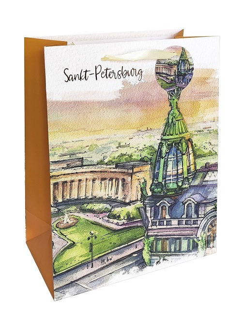 Пакет подар. бумажн. 18*23*10 см 210 гр/м2 Дом Зингера, мат.лам
