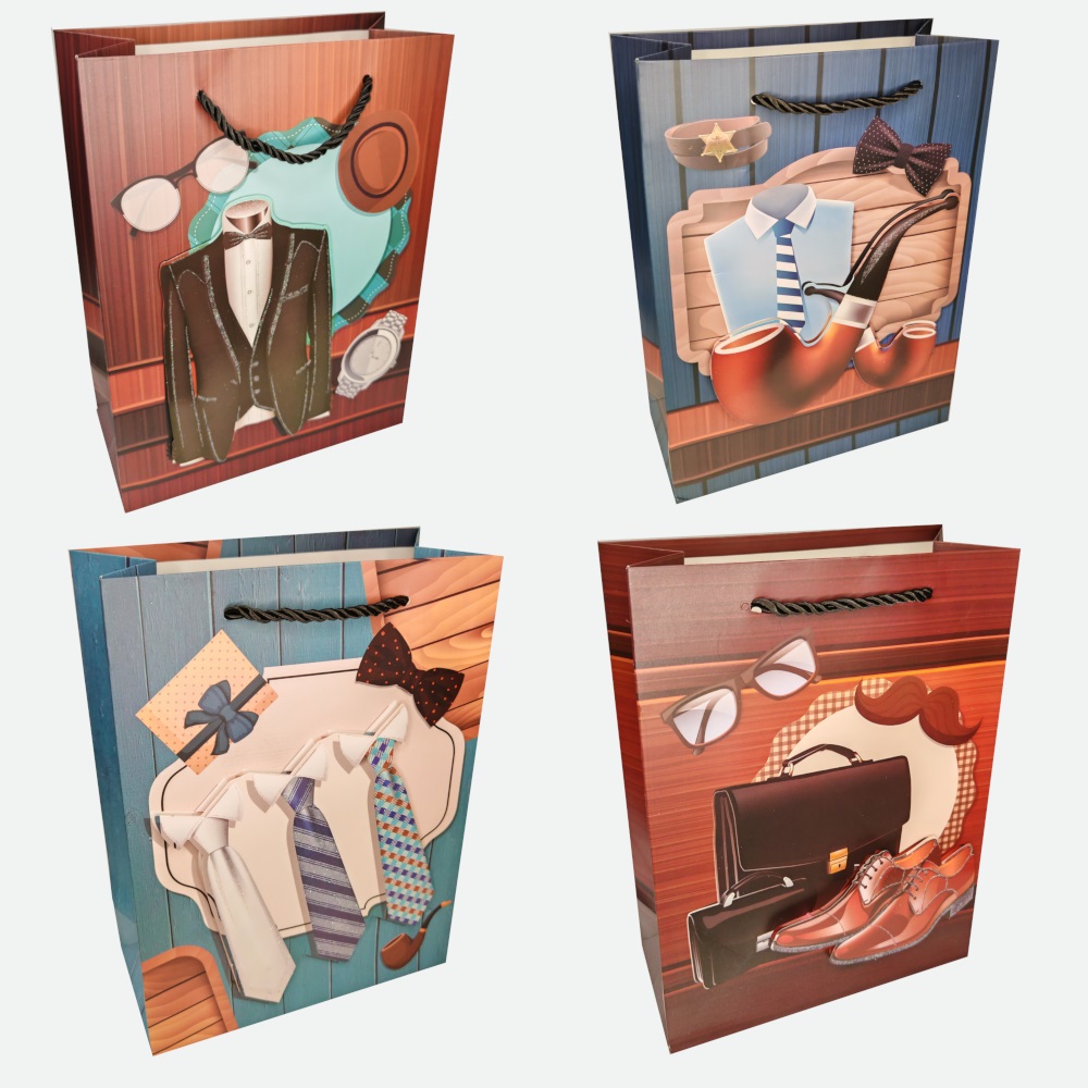 Пакет подар. бумажн. 18*24*8,5 см 210 гр/м2 Для мужчин, 4 дизайна
