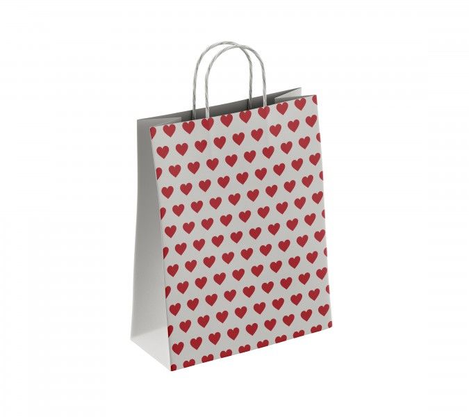 Пакет подар. бумажн. 25*22*12 см, 100 гр/м2 Сердца, крученые ручки