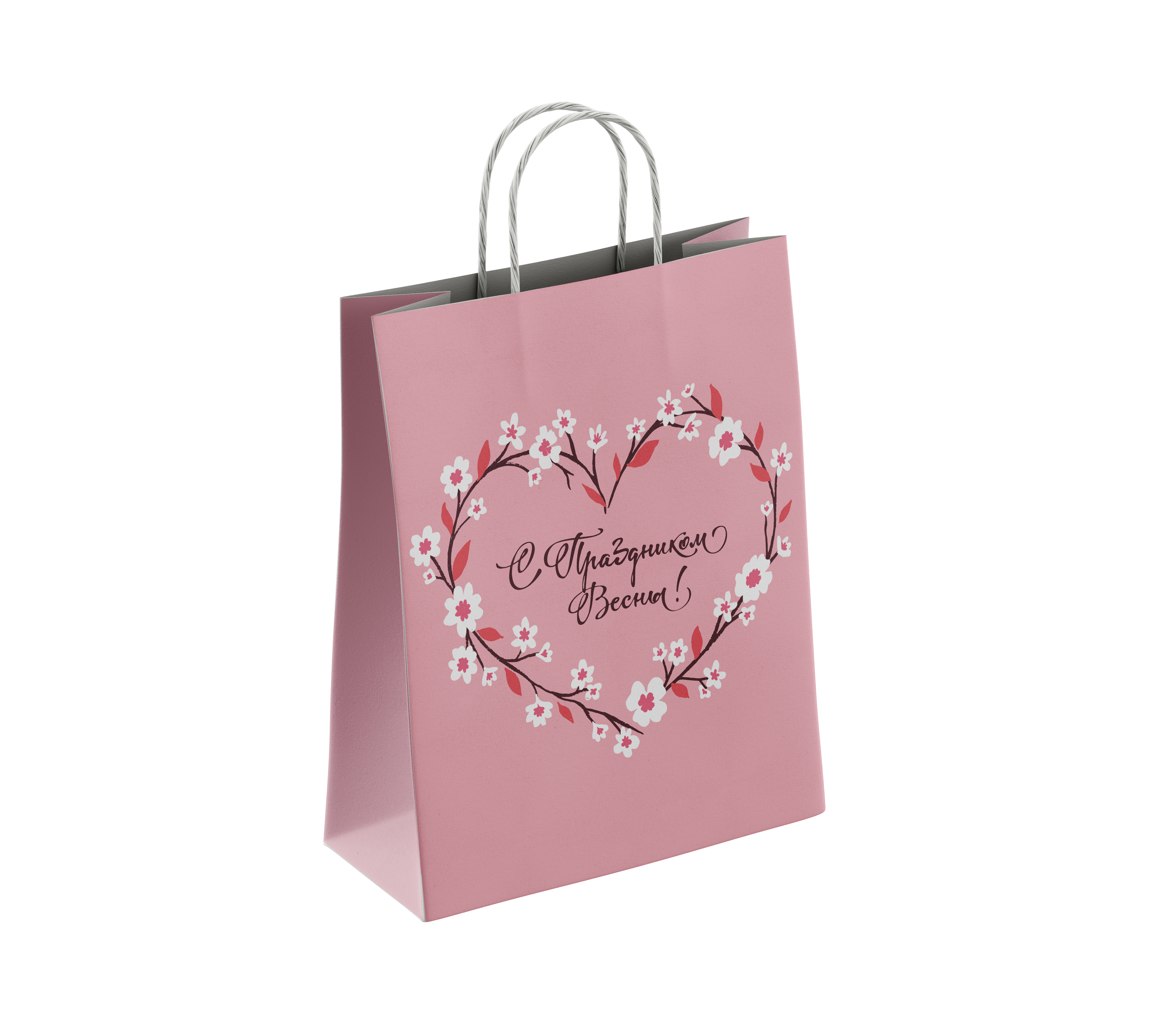 Пакет подар. бумажн. 35*26*15 см, 100 гр/м2 С праздником весны, крученые ручки