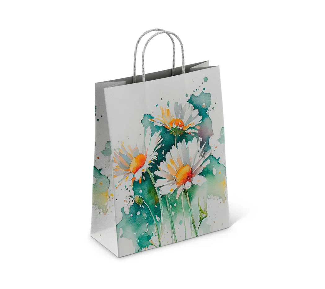 Пакет подар. бумажн. 45*35*15 см, 100 гр/м2 Ромашки, крученые ручки