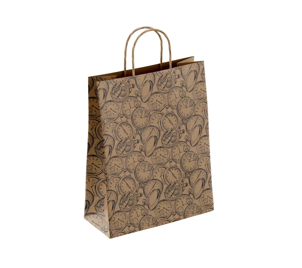 Пакет подар. бумажн. 45*35*15 см, 80 гр/м2 Часы, крученые ручки