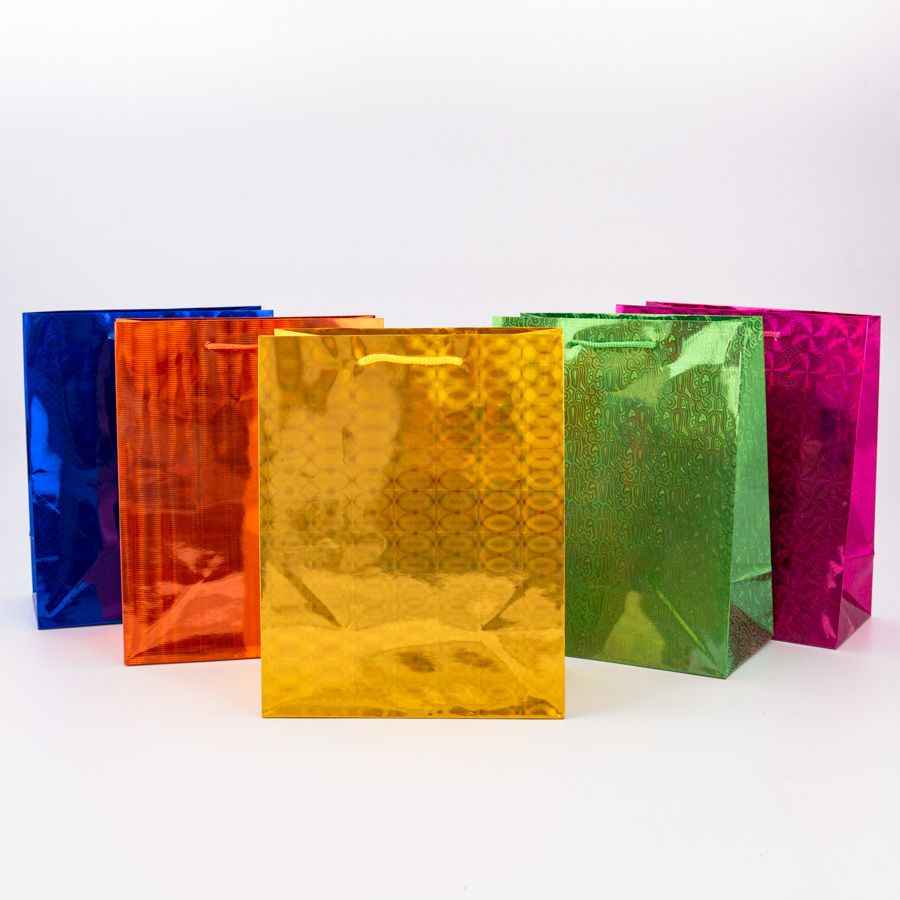 Пакет подар. бумажн. голография 18*23*10 см, 160гр/м2 Ассорти
