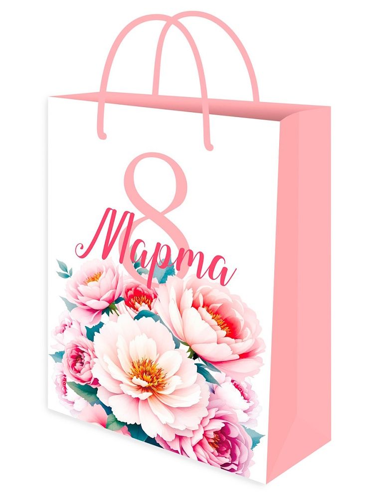 Пакет подар. бумажн. крафт 22*32*11 см 120гр/м2 8 марта