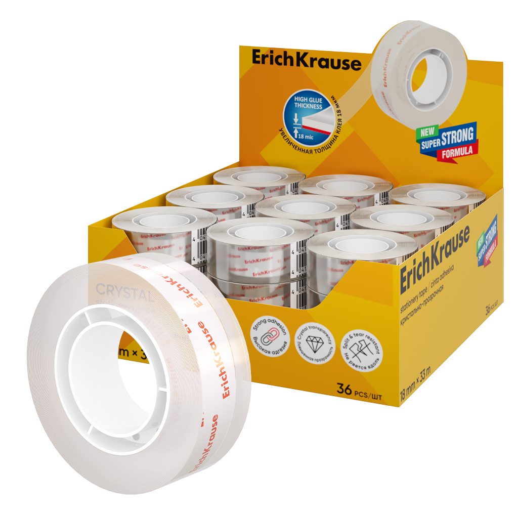 Клейкая лента ErichKrause Кристально прозрачная, 18ммх33м, повышенная прозрачность (в дисплее по 36 шт.)