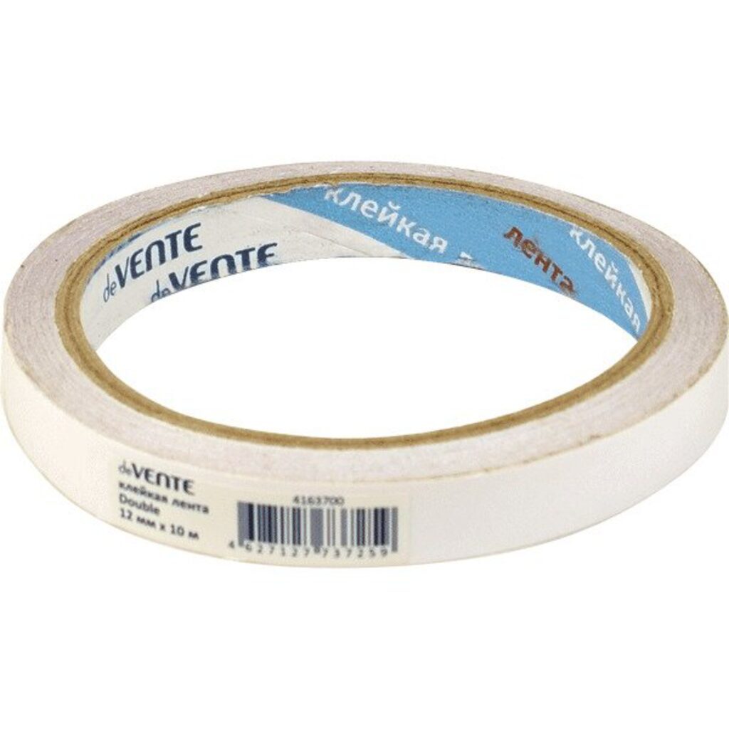 Клейкая лента двусторонняя "deVENTE" полипропиленовая основа 90 мкм, 12 ммx10 м, картонная втулка, индивидуальная маркировка