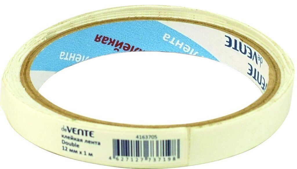 Клейкая лента двусторонняя "deVENTE" вспененная основа 1 мм, 12 ммx1 м, картонная втулка, индивидуальная маркировка